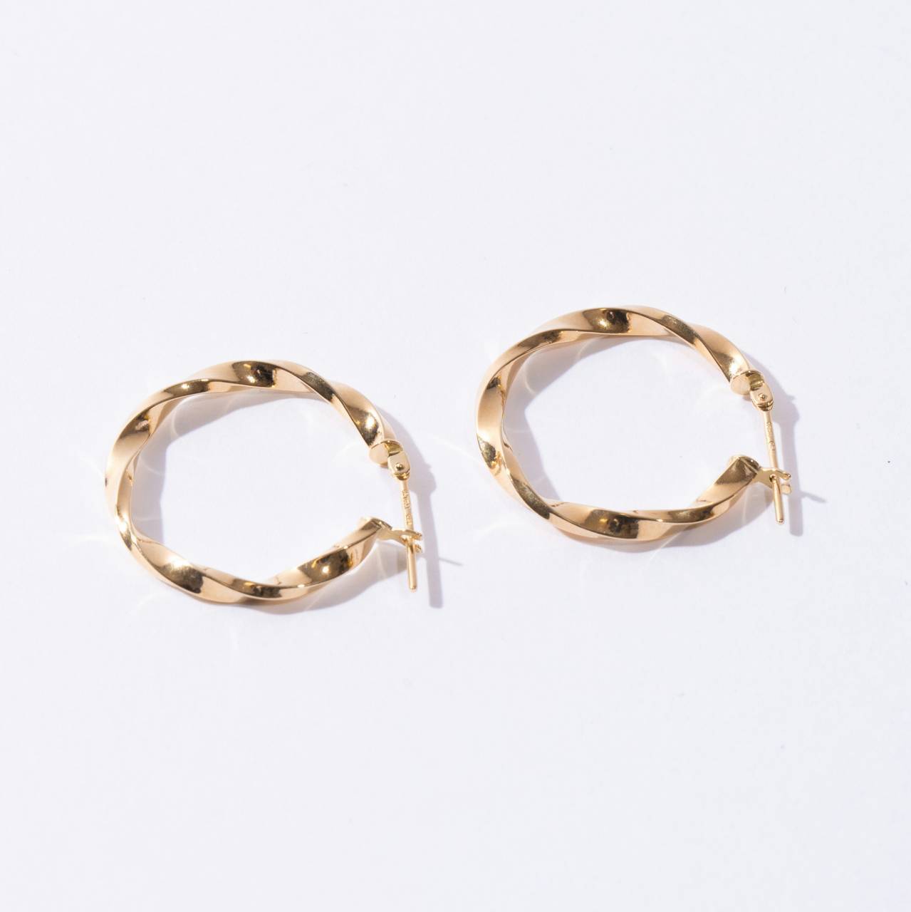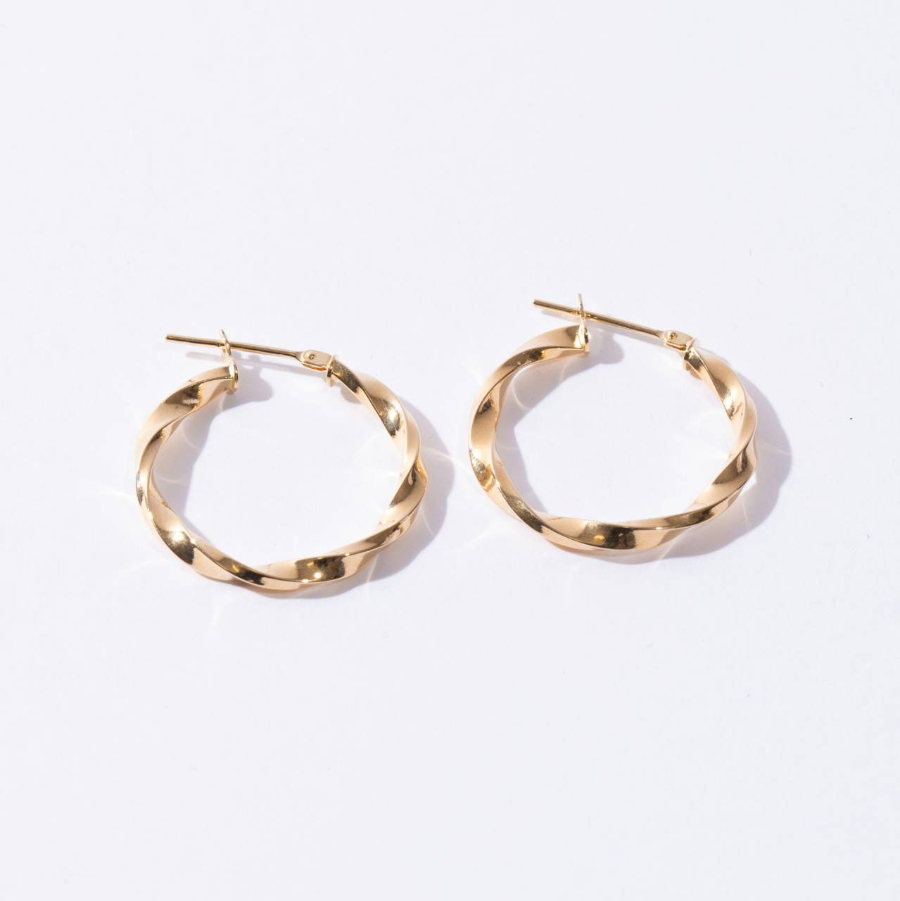 イタリアならではの感性が息づく、ツイストフォルムのゴールドフープ。