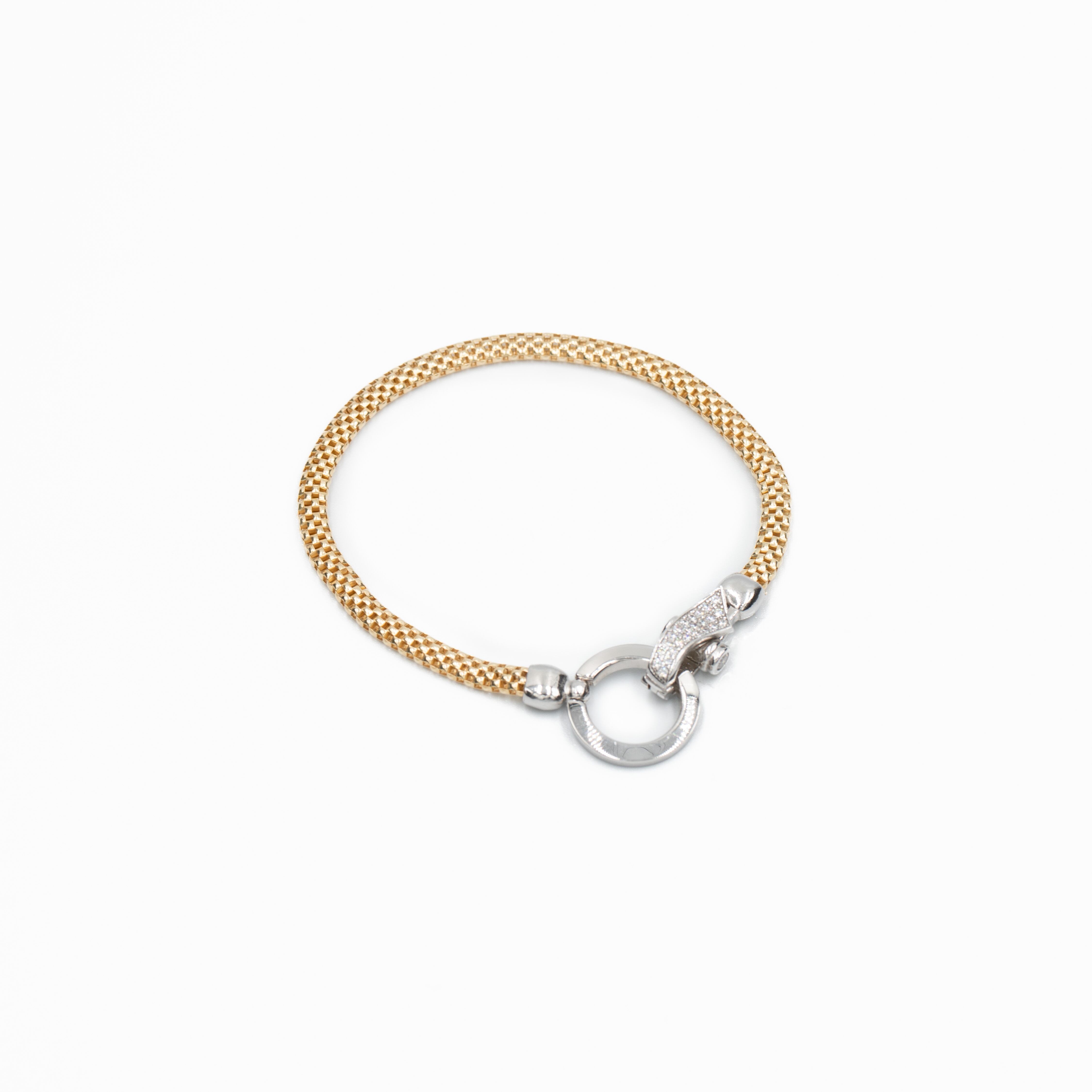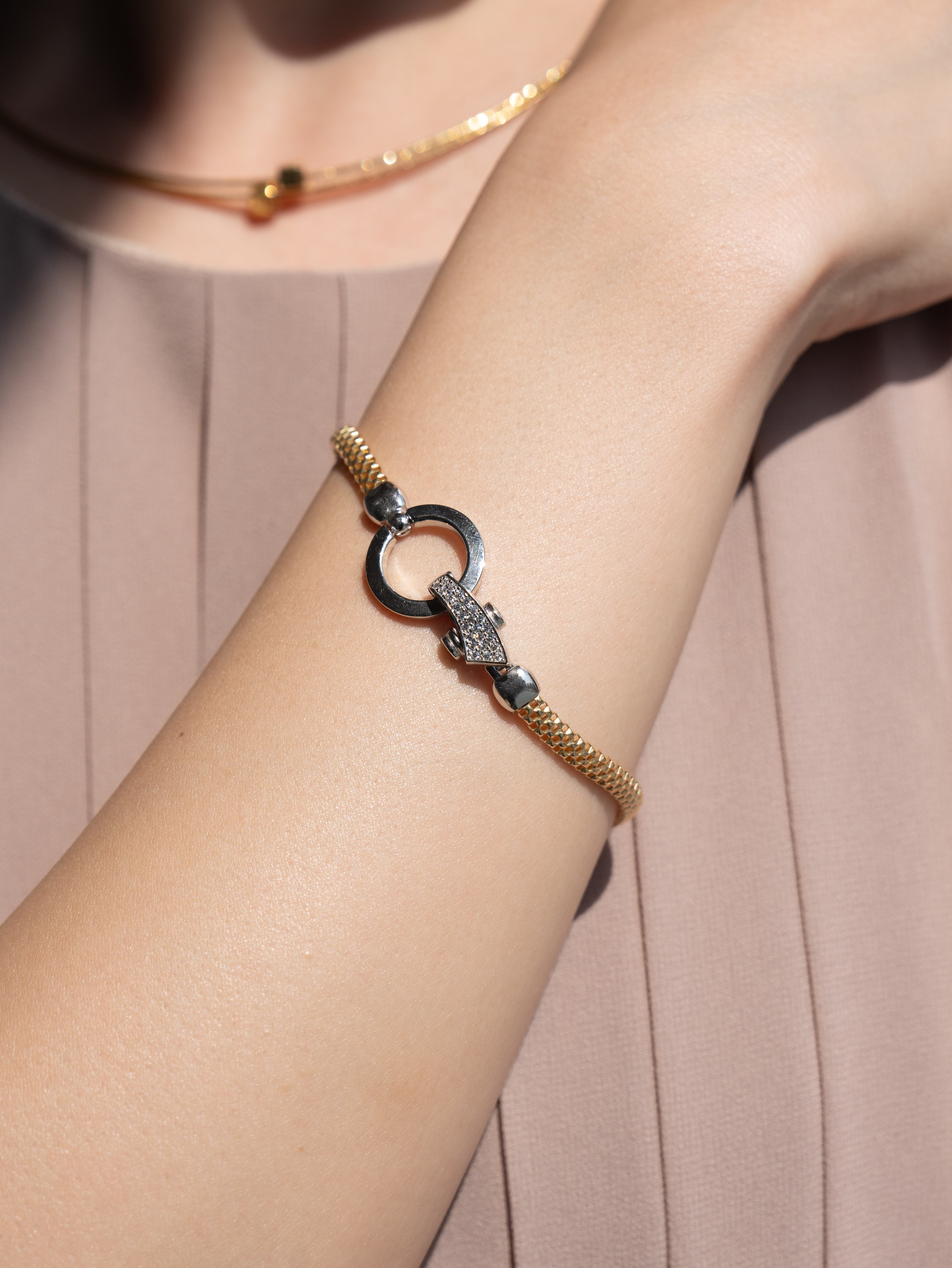 18金コーティングを施したイタリアンシルバーに、キュービックジルコニアの繊細な輝きを添えたデザインブレスレット。