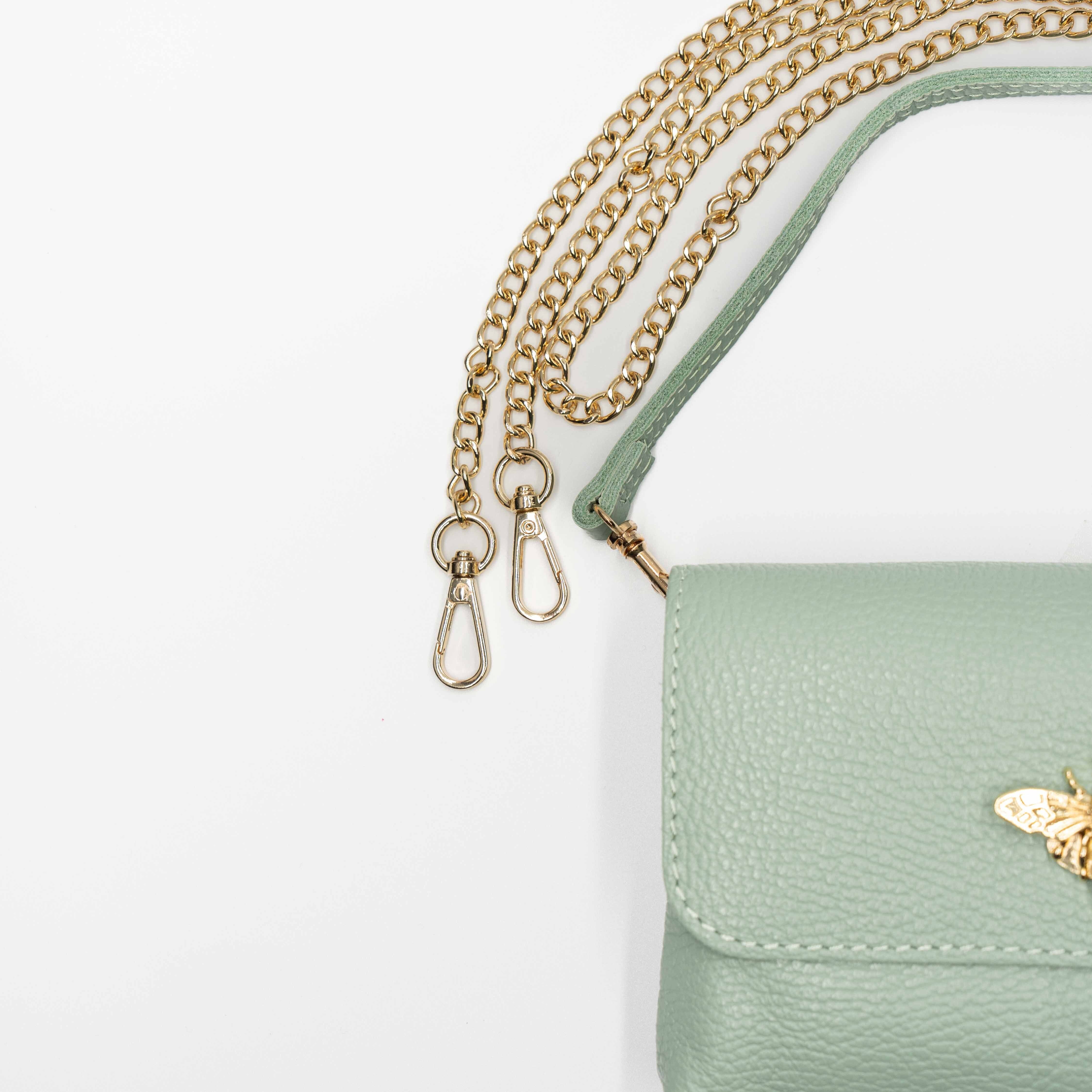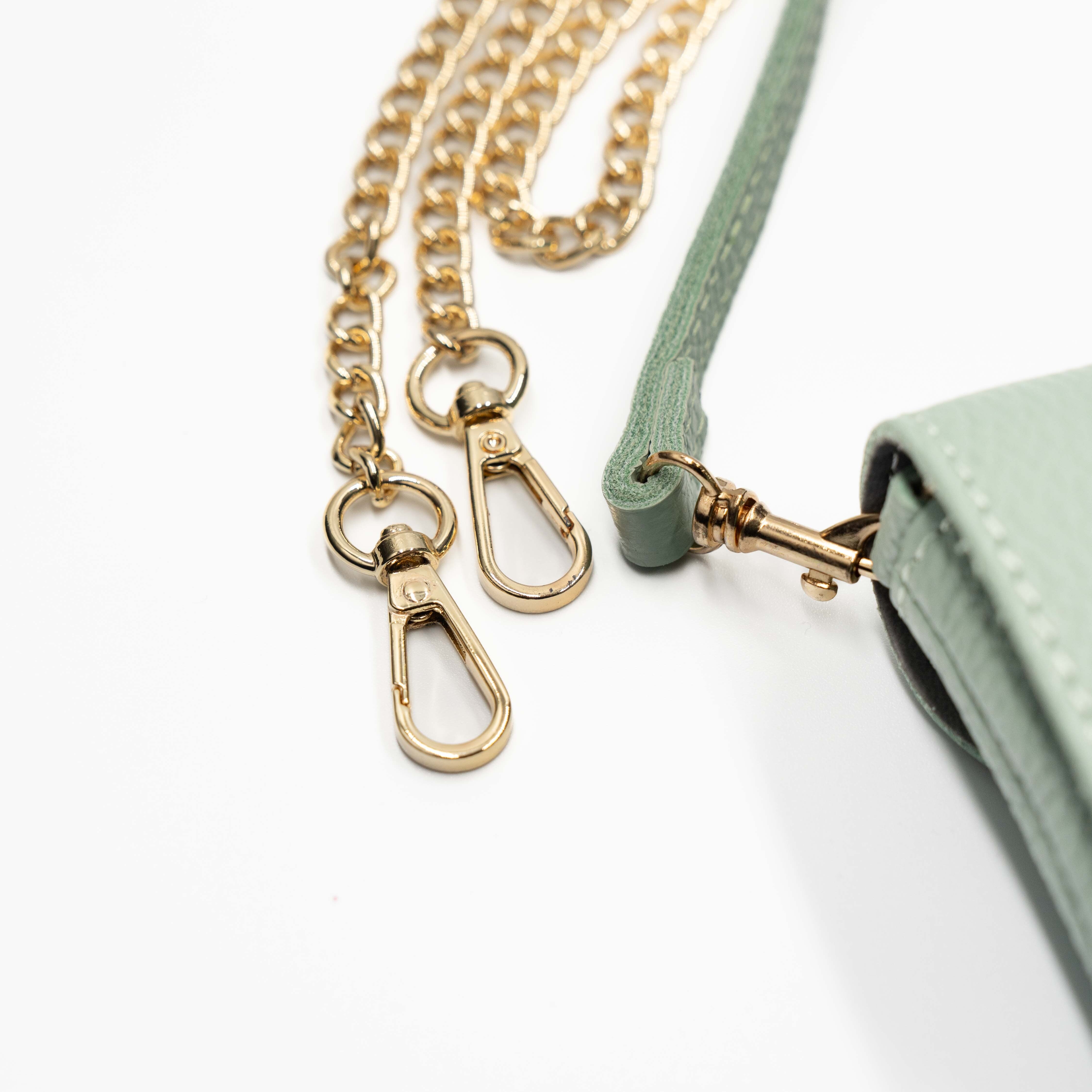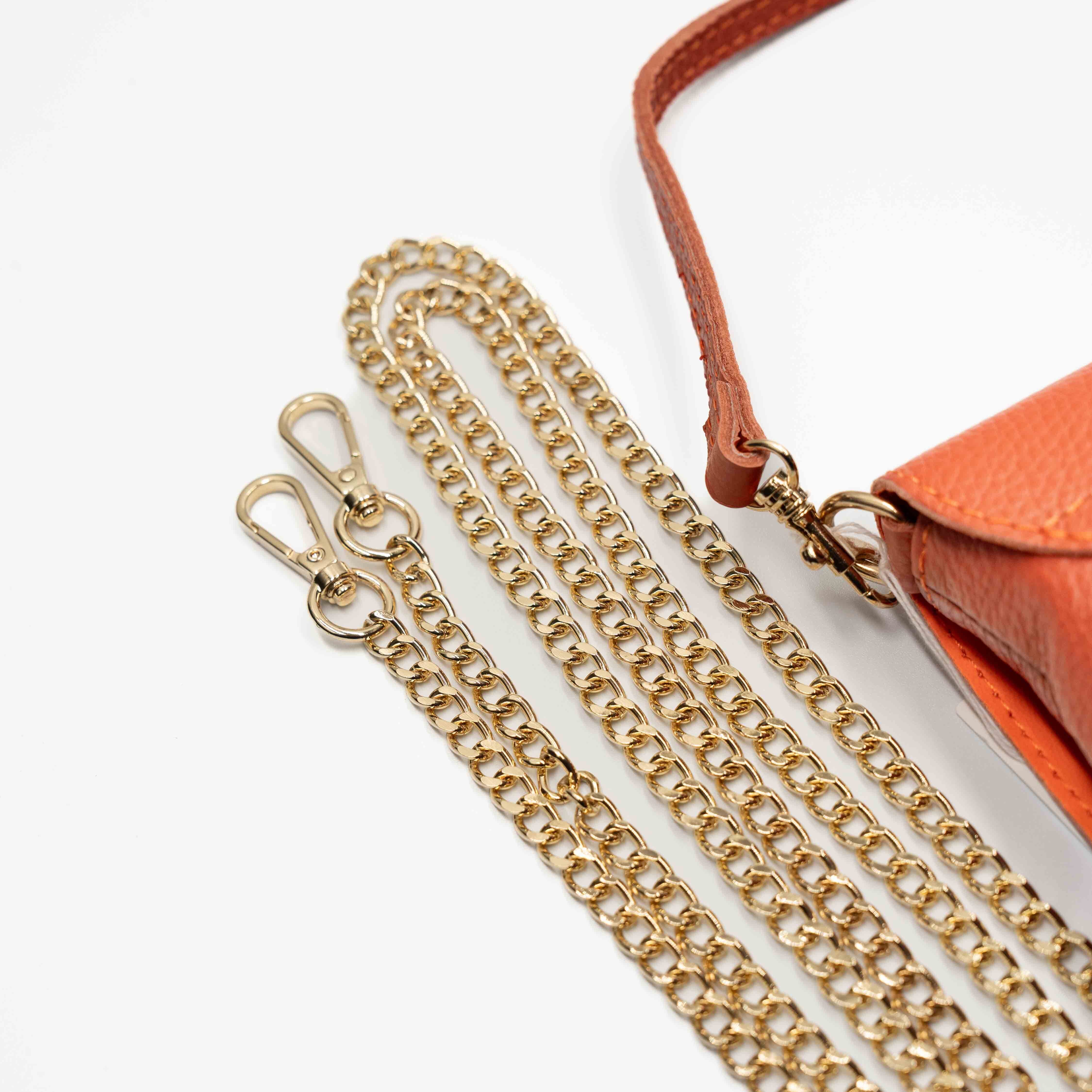 ハンドストラップとロングチェーンの2WAY仕様で、シーンに合わせた持ち方が可能。