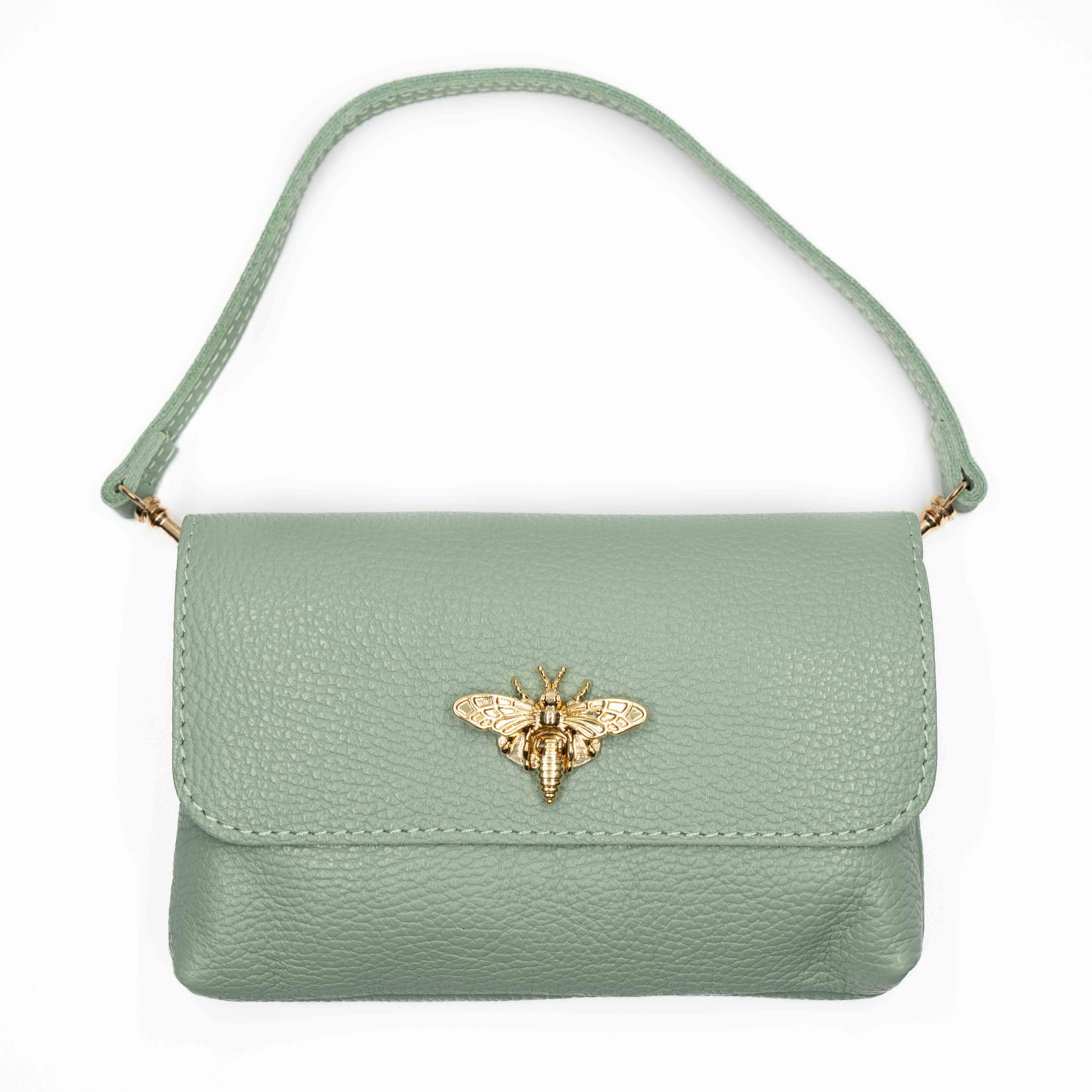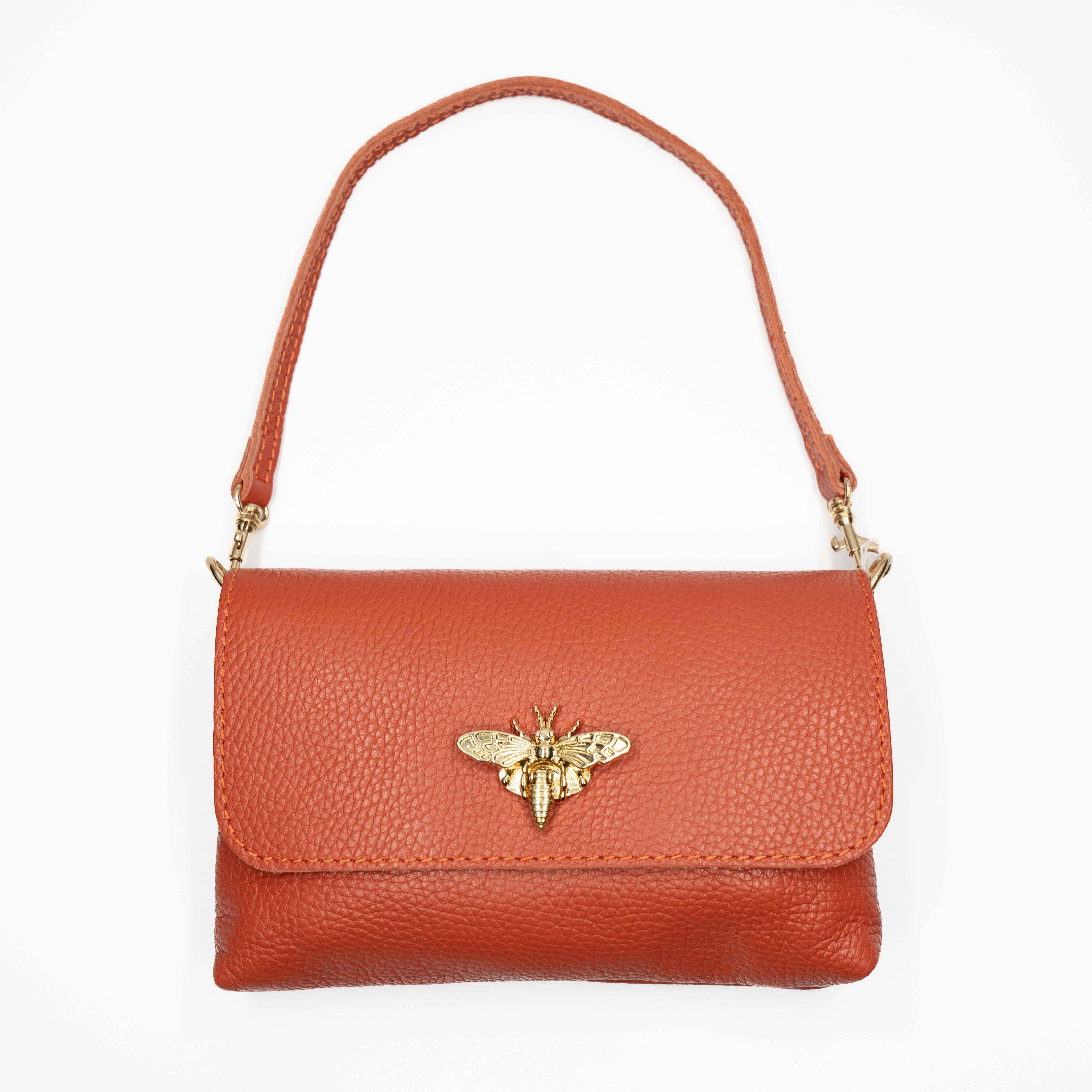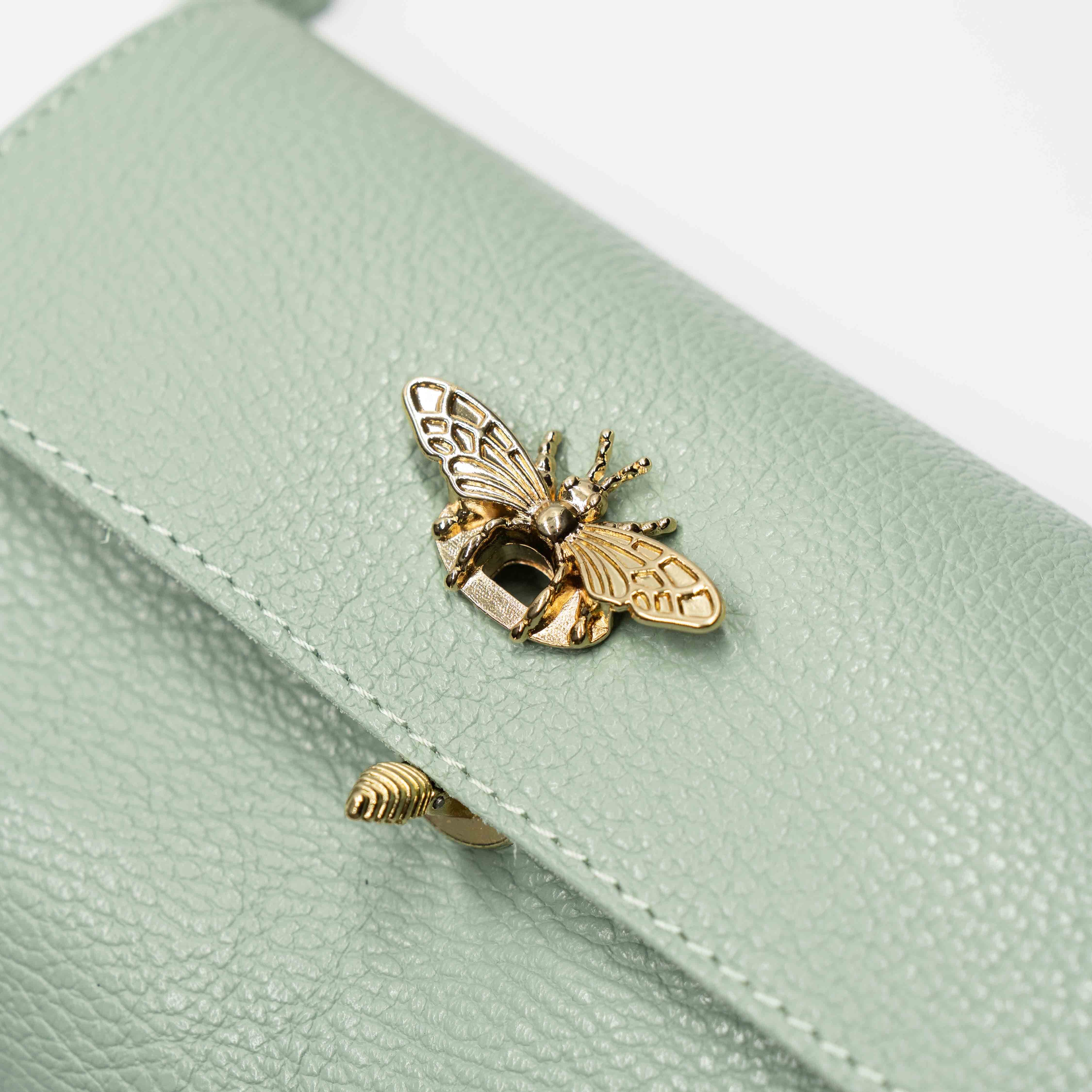 フロントに配した蜂モチーフの金具が、シンプルなデザインに程よい存在感を添えます。