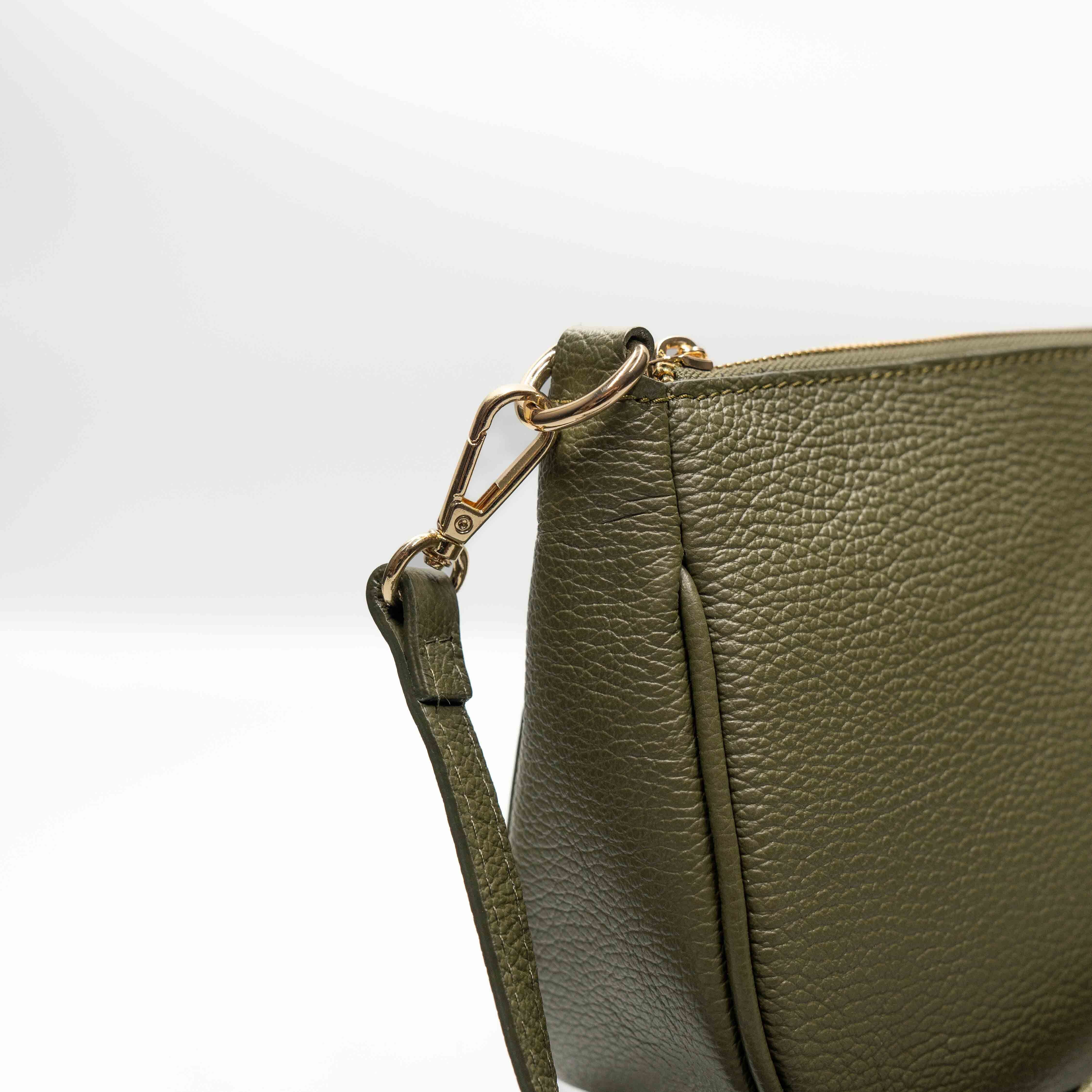 ゴールド金具が上品なアクセントとなり、落ち着いたカラーでコーディネートに馴染みやすいデザインです。