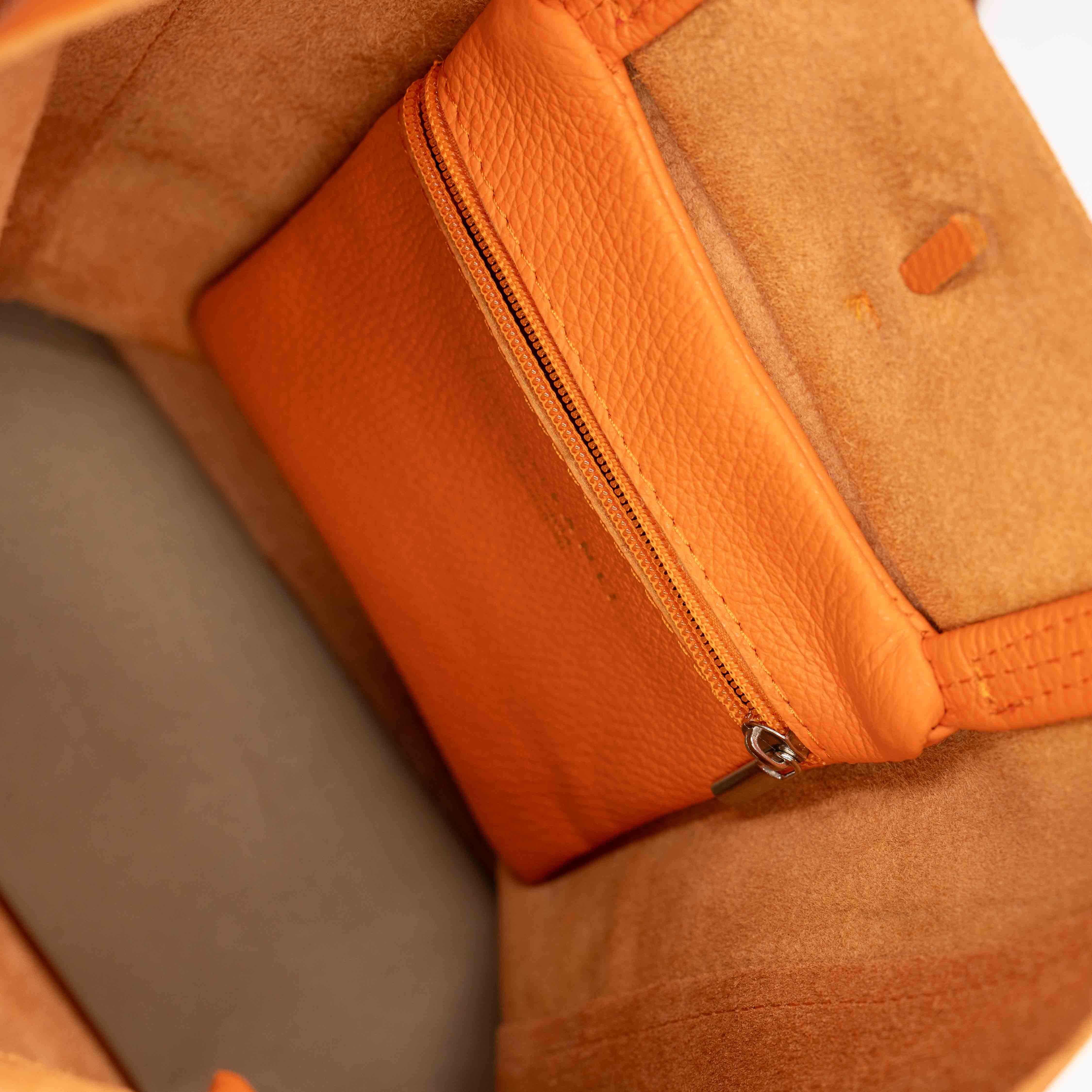 鮮やかで明るいオレンジカラー。発色の良いレザー。