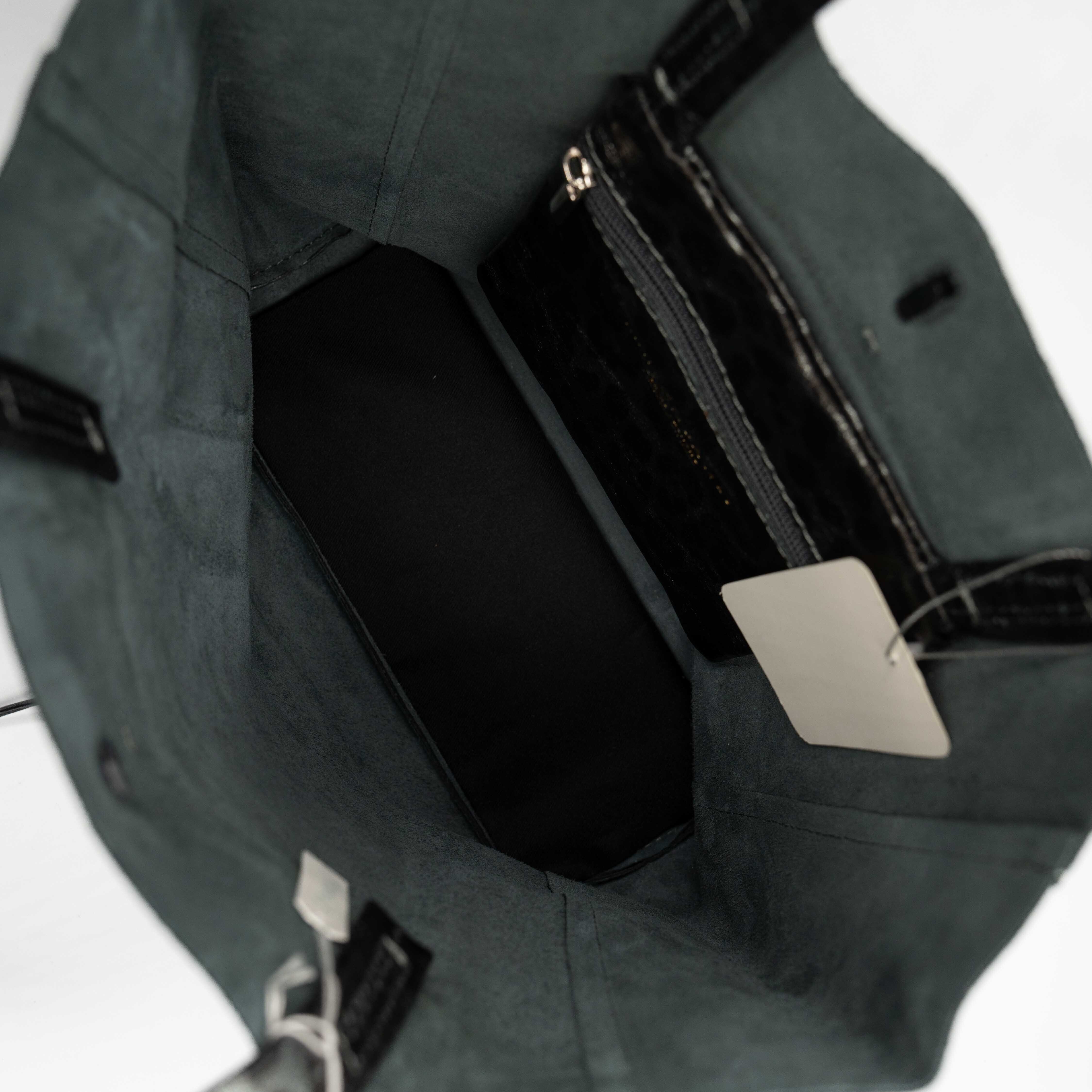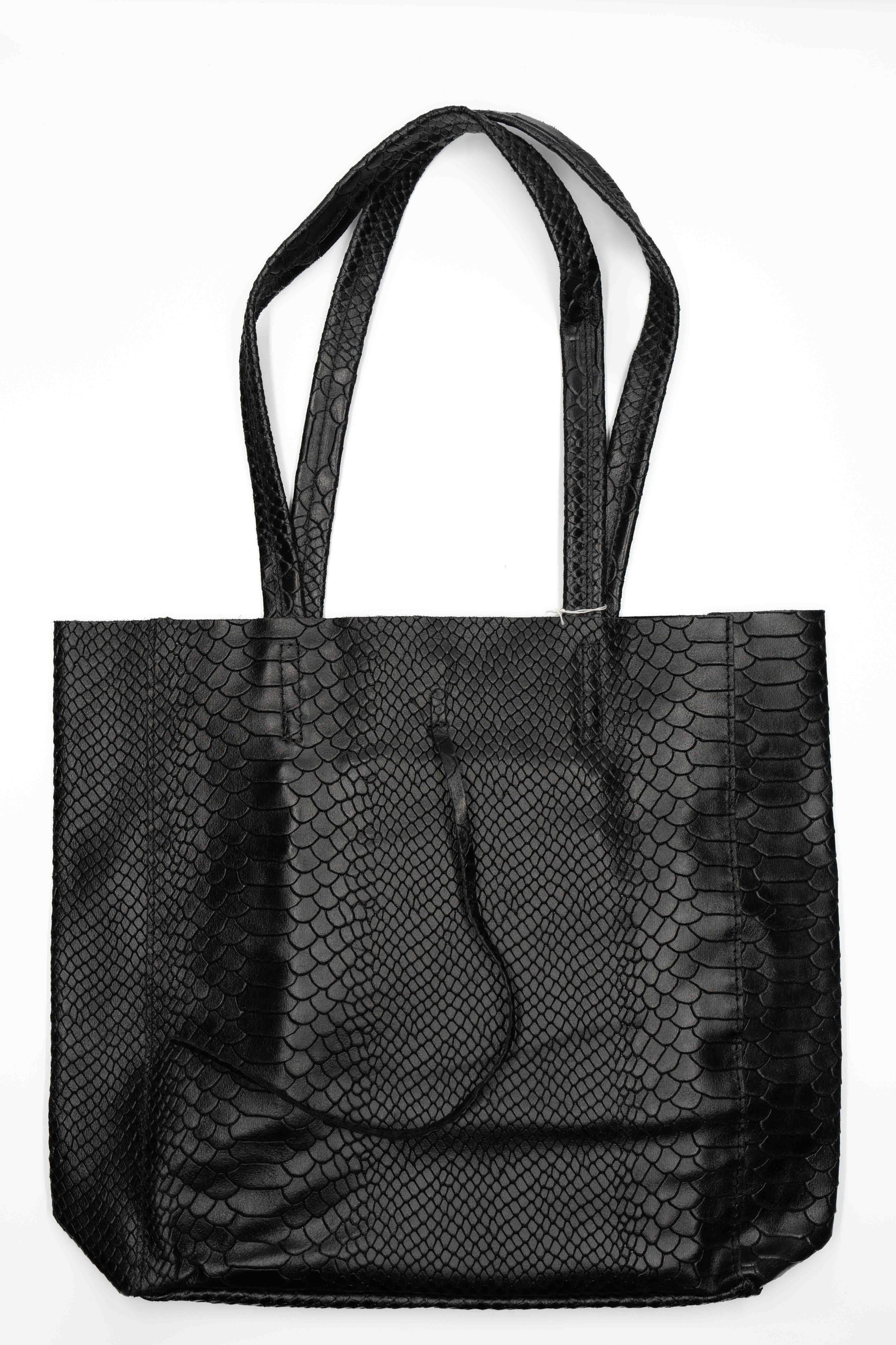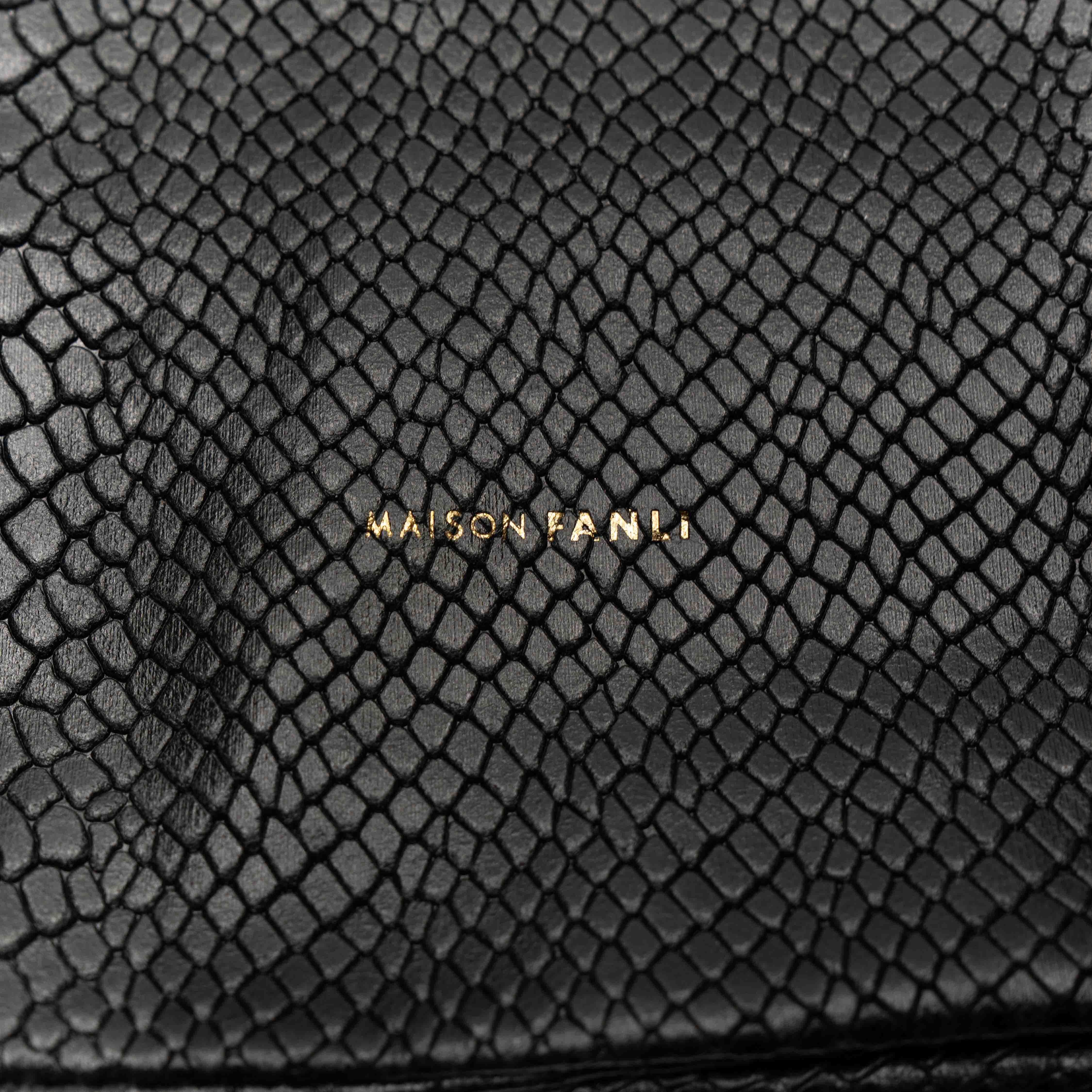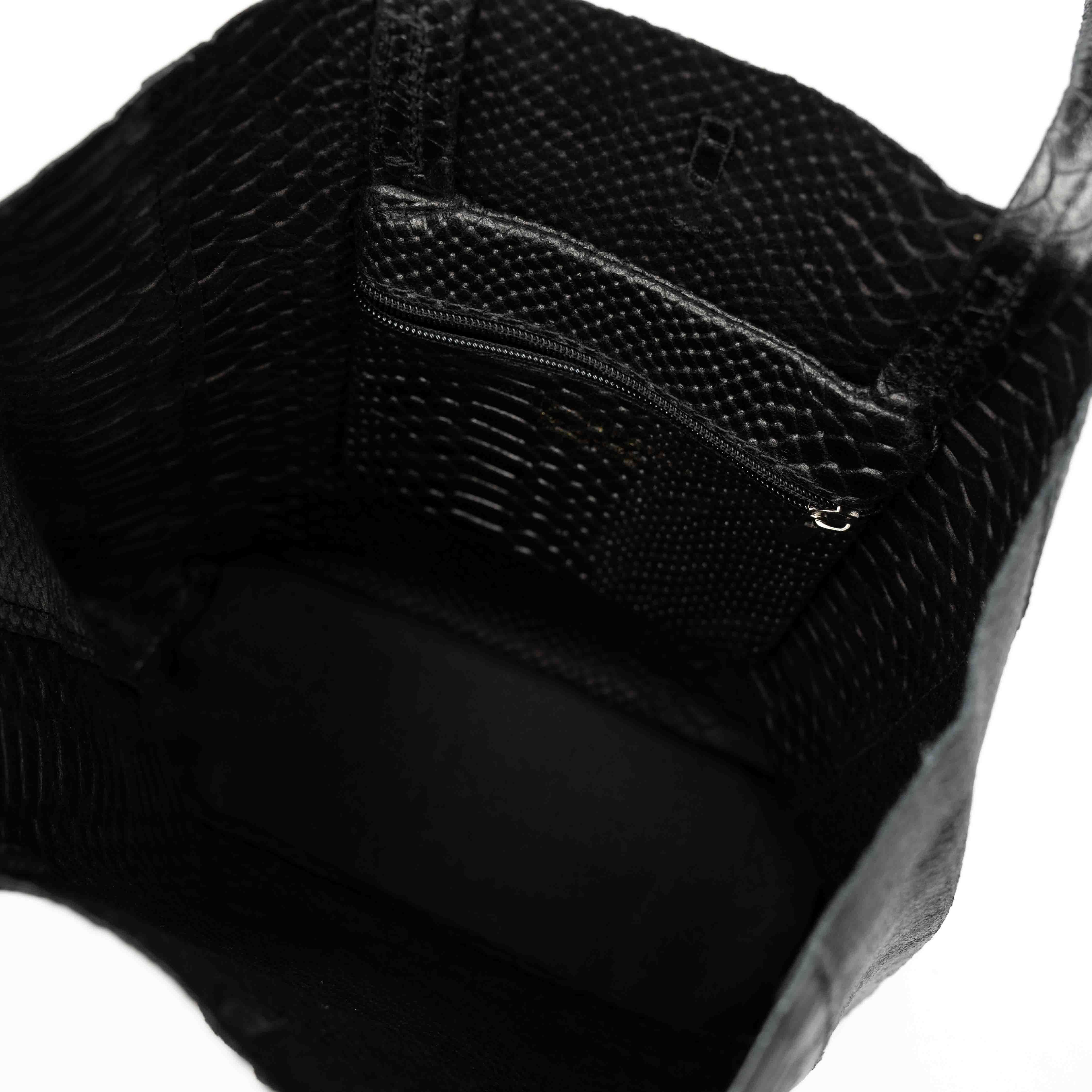 ブラックベースのパイソン柄。ツヤ感のある型押しレザー。