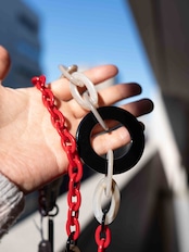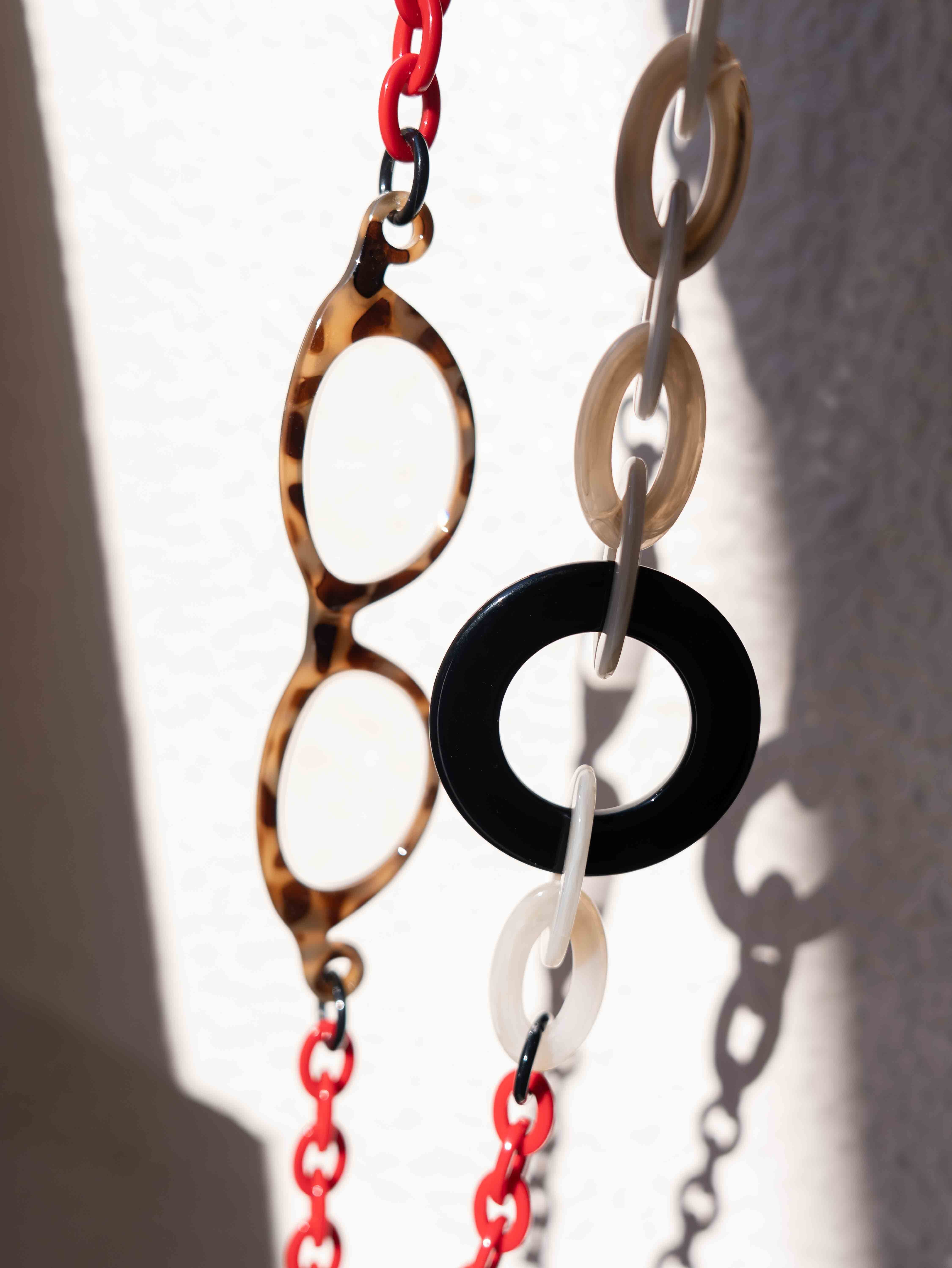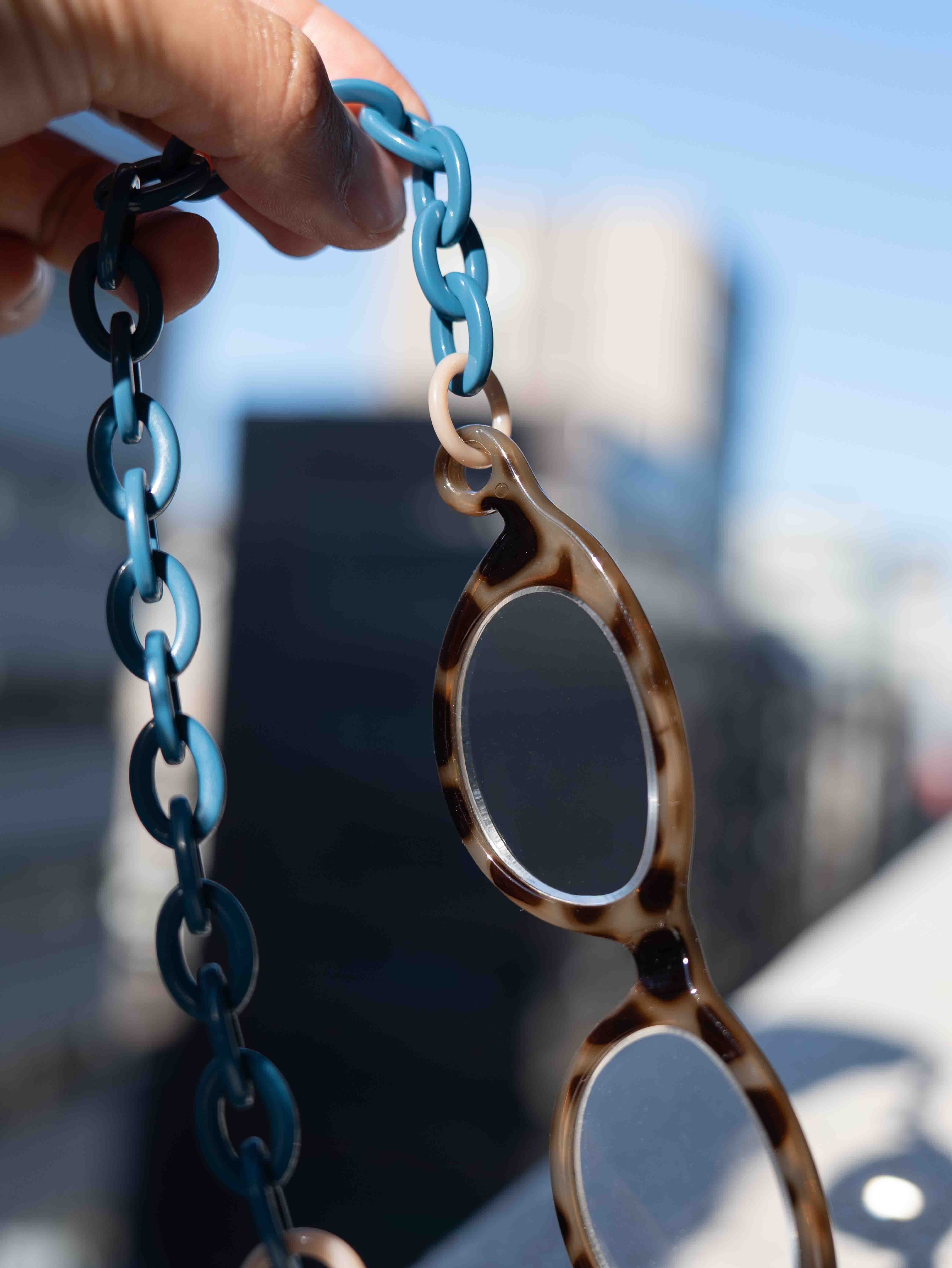 軽量アクリルチェーンを使用し、長時間着けても快適な着け心地。